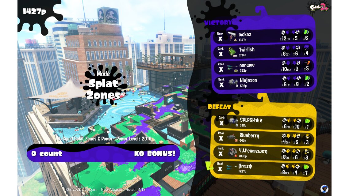 | Mode | Splat Zones - Ranked Battle | |||||||||||||||||||||||||||||||||||||||||||