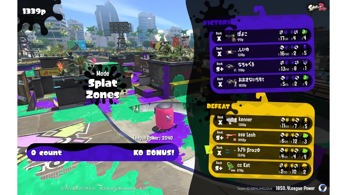 | Mode | Splat Zones - League Battle (Quad) | |||||||||||||||||||||||||||||||||||||||||||