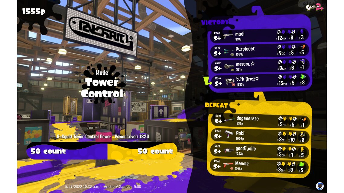 | Mode | Tower Control - Ranked Battle | ||||||||||||||||||||||||||||||||||||||||