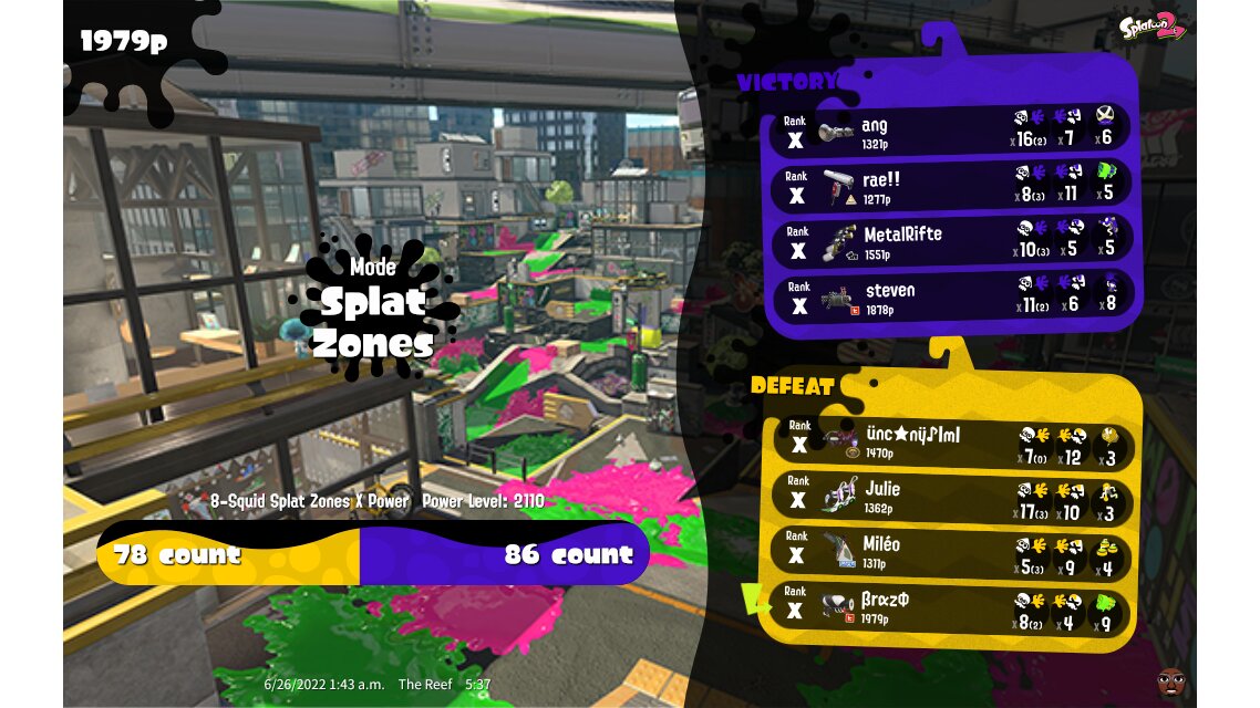 | Mode | Splat Zones - Ranked Battle | |||||||||||||||||||||||||||||||||||||||||||
