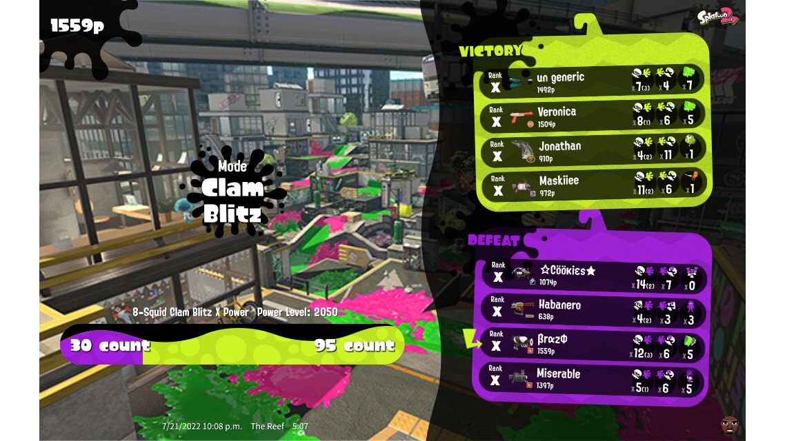 | Mode | Clam Blitz - Ranked Battle | ||||||||||||||||||||||||||||