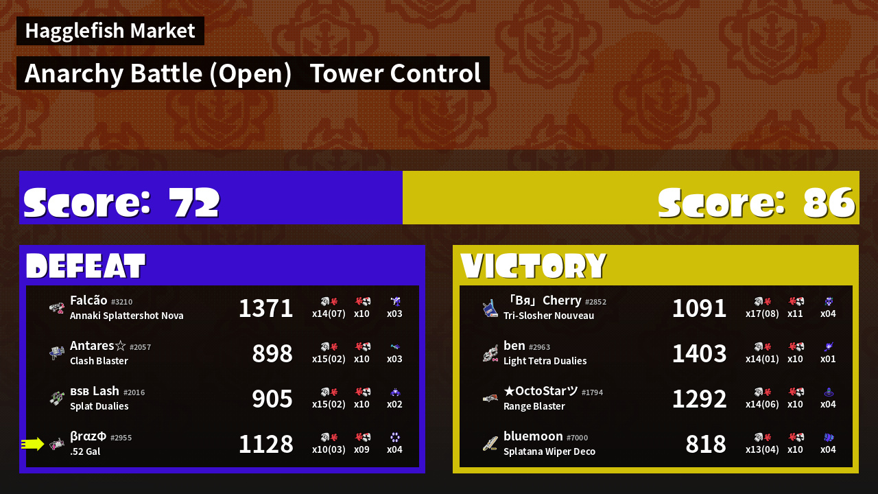 | Mode | Tower Control - Anarchy Battle (Open) | ||