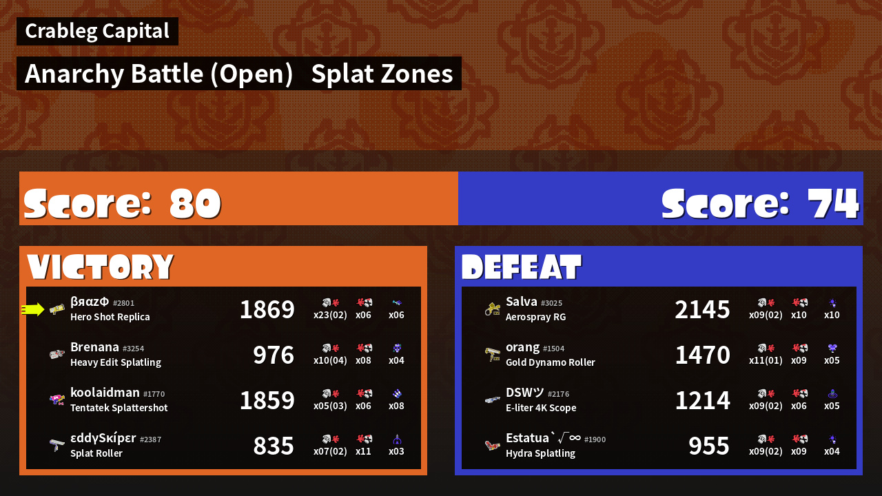 | Mode | Splat Zones - Anarchy Battle (Open) | ||