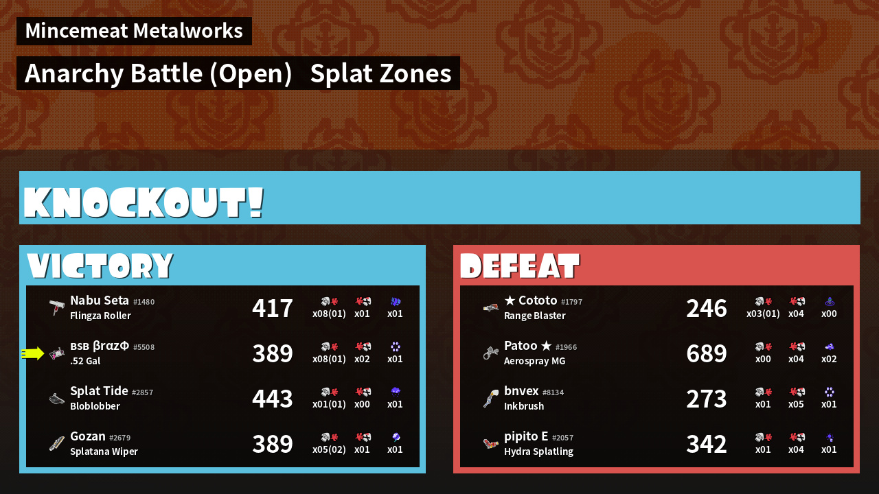 | Mode | Splat Zones - Anarchy Battle (Open) | ||