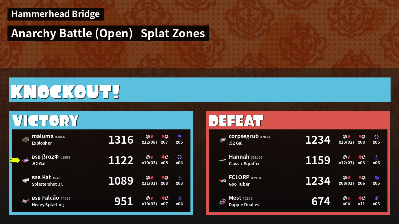 | Mode | Splat Zones - Anarchy Battle (Open) | ||