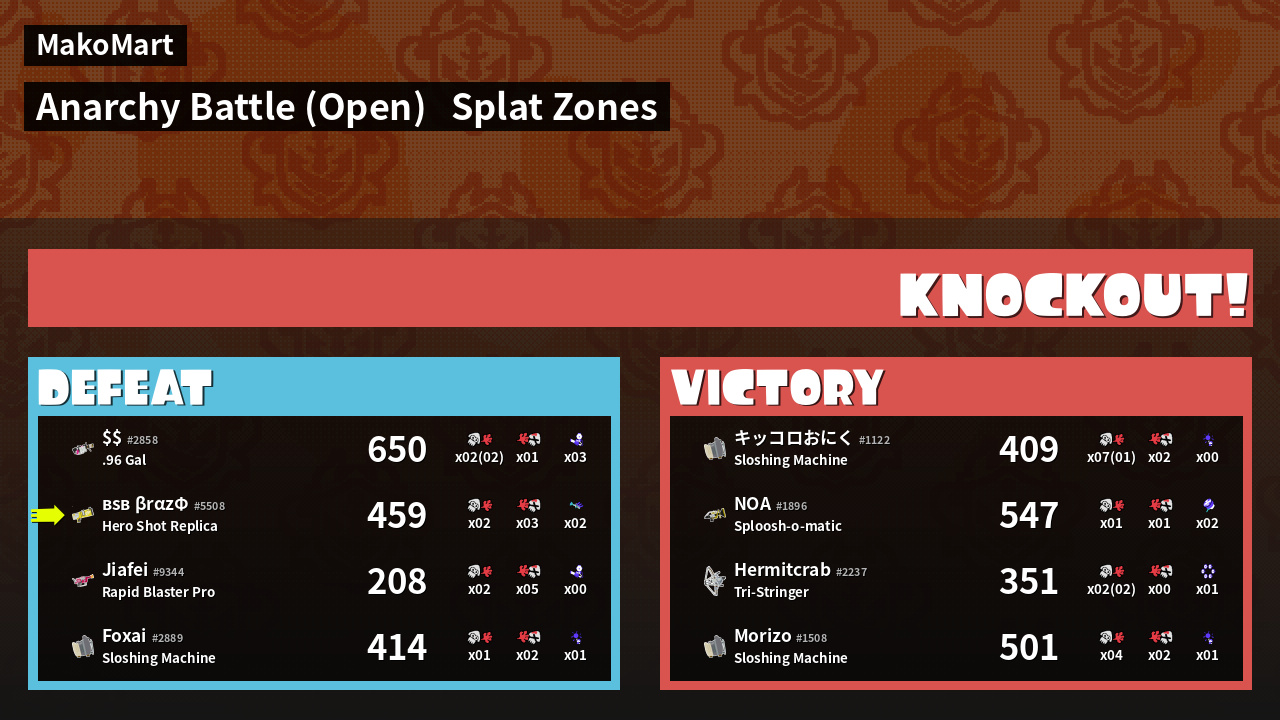 | Mode | Splat Zones - Anarchy Battle (Open) | ||