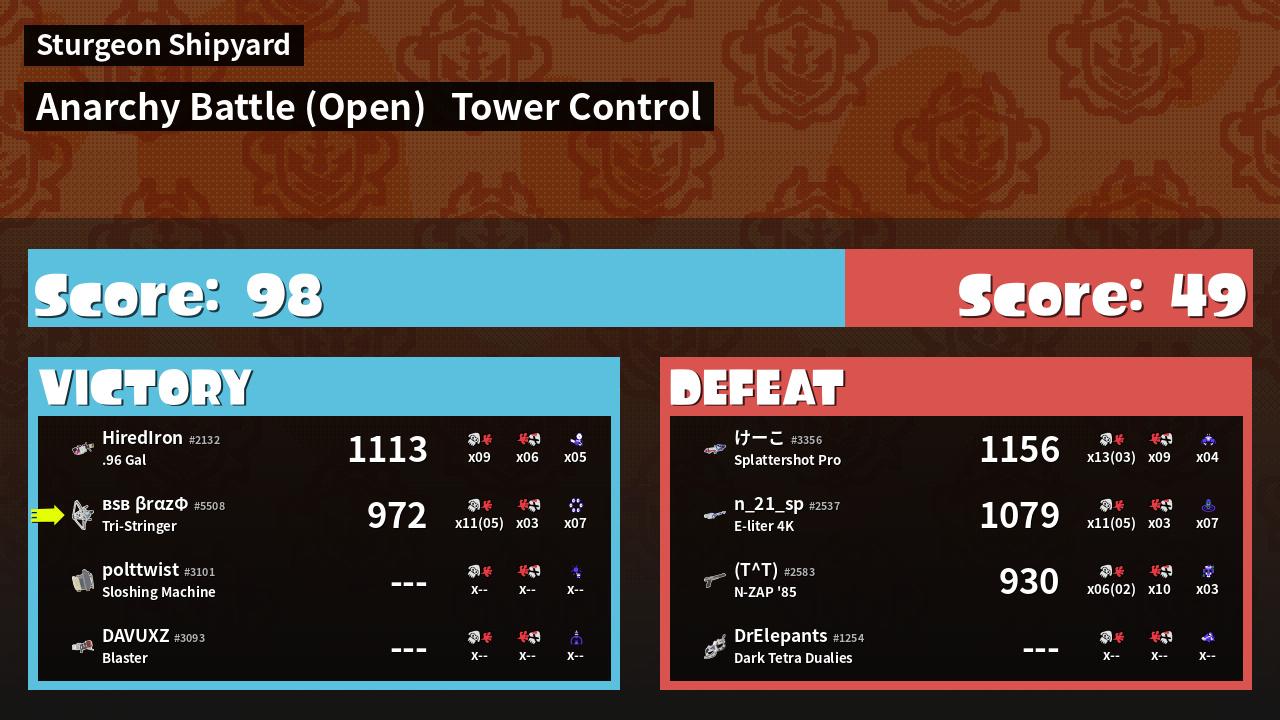 Kills / Deaths | 6 + 5 / 3 > Kill Ratio: 2.00 | ||