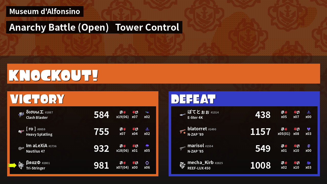 | Mode | Tower Control - Anarchy Battle (Open) | ||