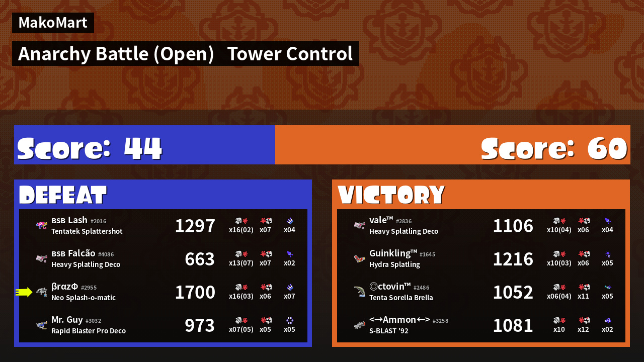 | Mode | Tower Control - Anarchy Battle (Open) | ||