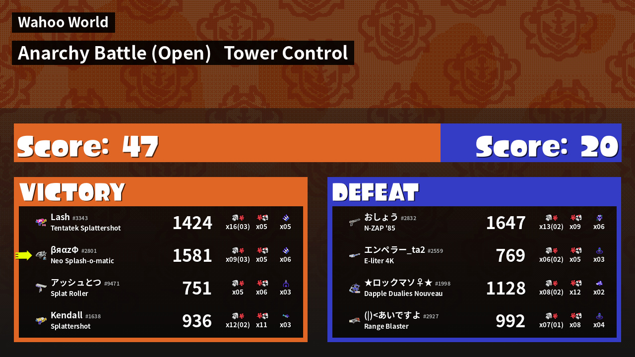 | Mode | Tower Control - Anarchy Battle (Open) | ||