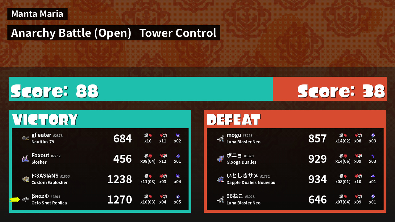 | Mode | Tower Control - Anarchy Battle (Open) | ||