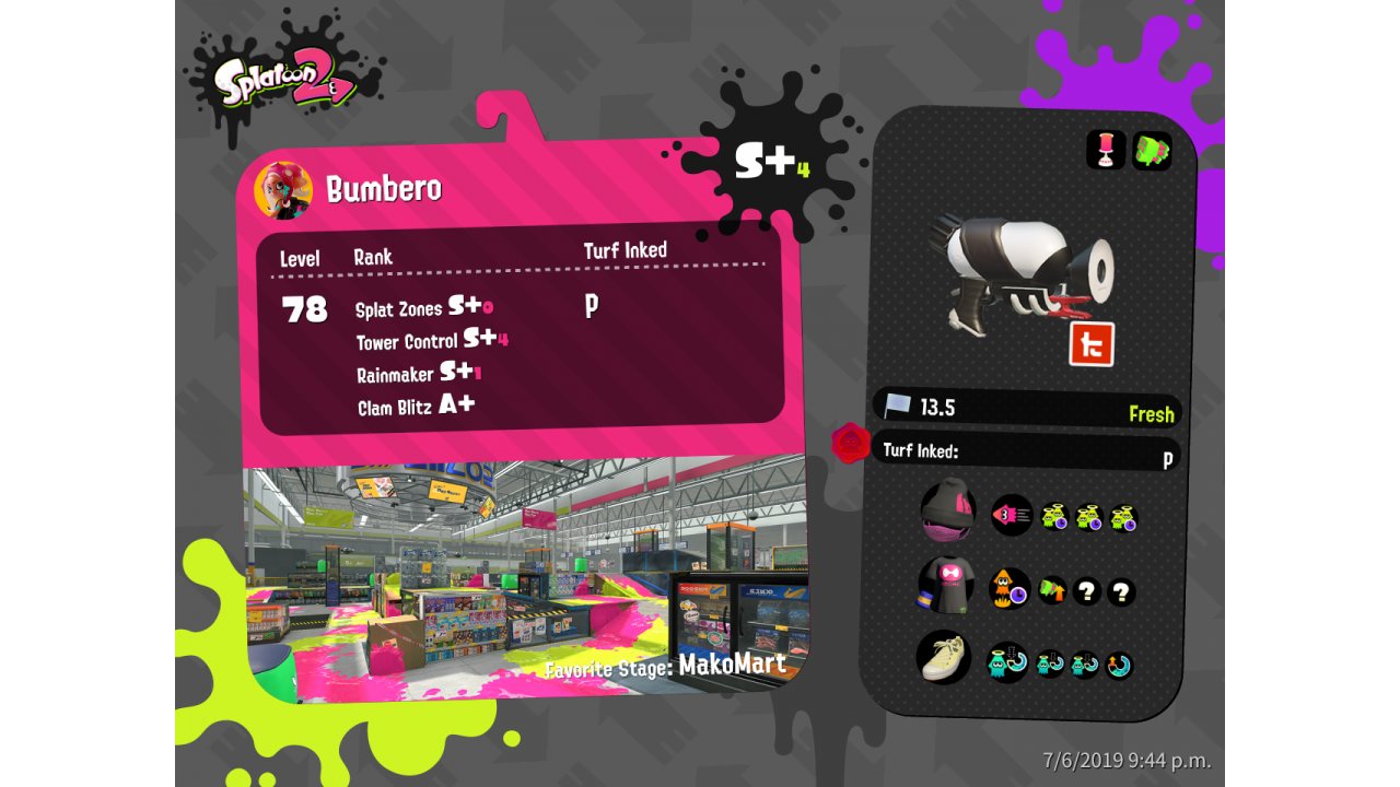 | Name | Weapon | Level | Rank | Inked | k+a/sp | k/d |