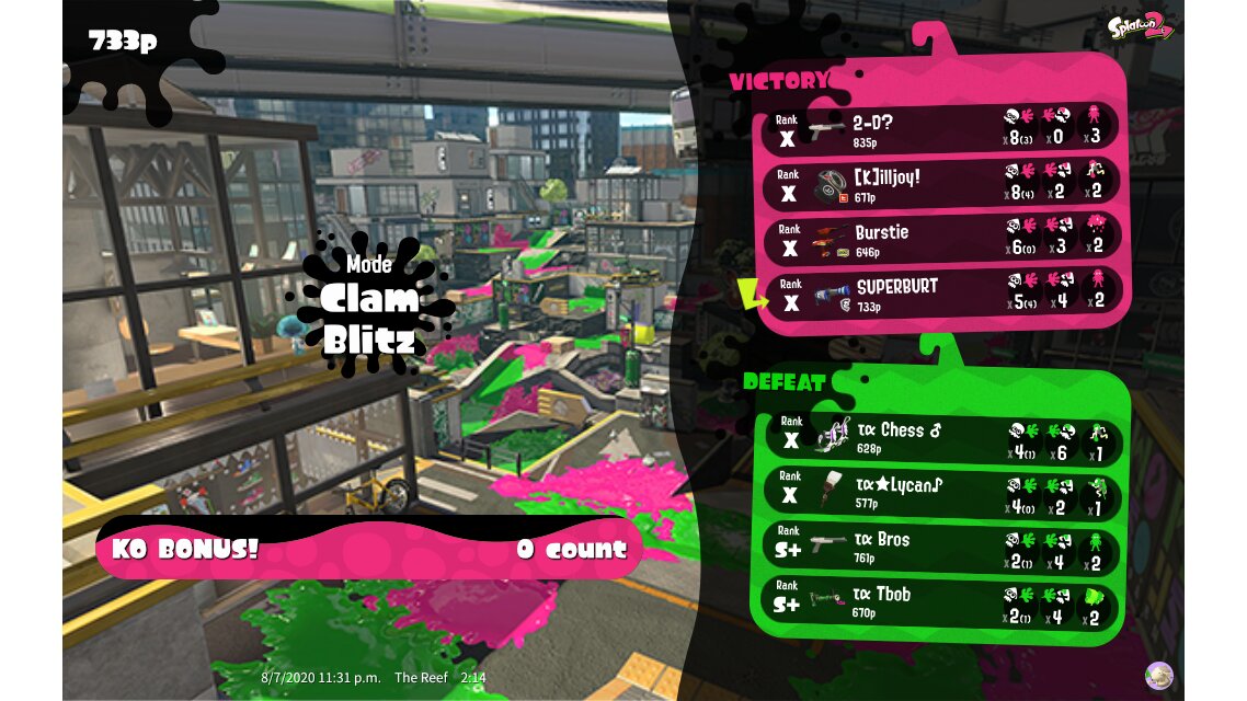 | Mode | Clam Blitz - Private Battle | ||||||||||||||||