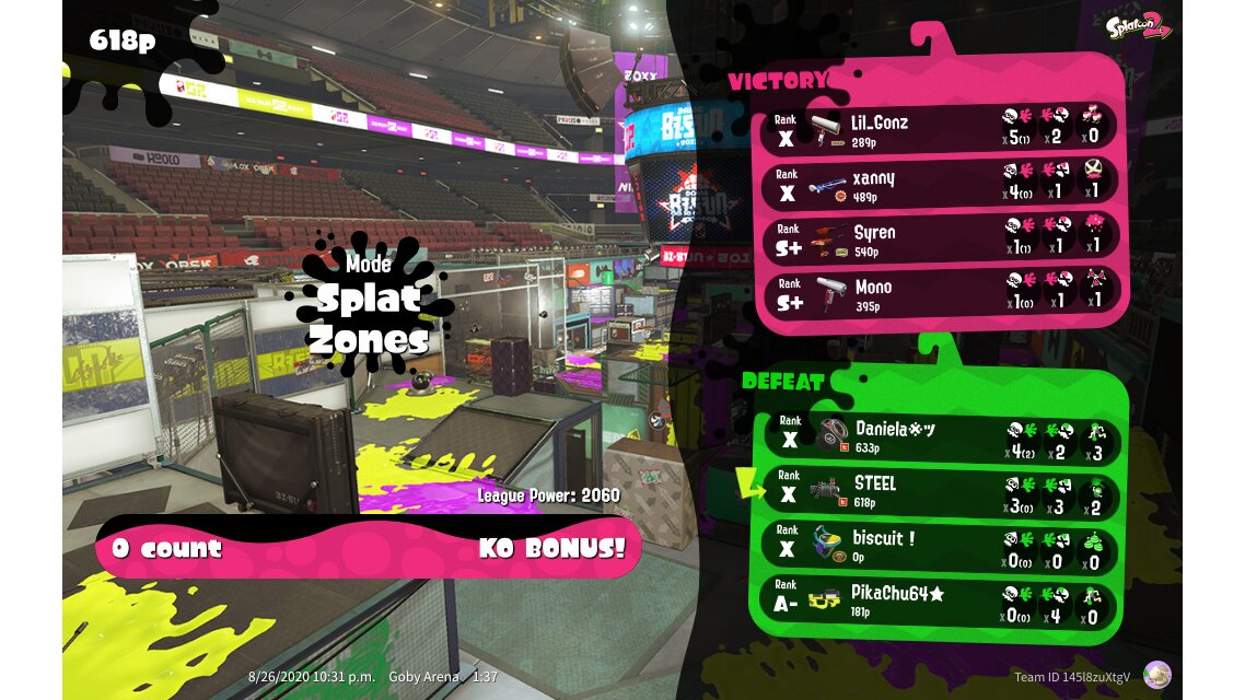 | Mode | Splat Zones - League Battle (Twin) | |||||||||||||||||||||||||||||||