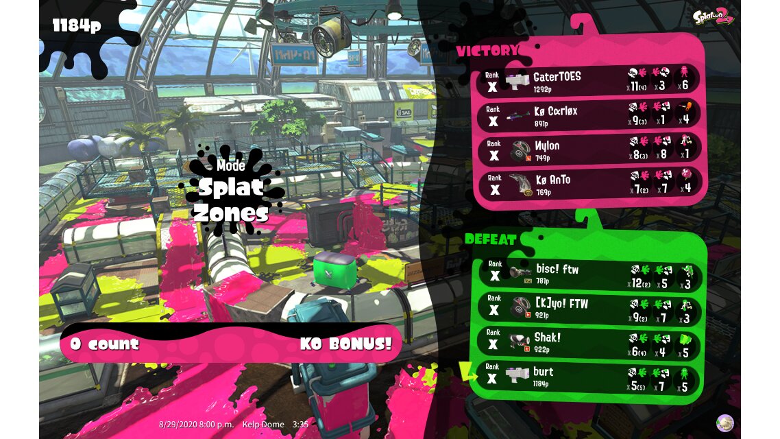 | Mode | Splat Zones - Private Battle | |||||||||||||||||||||||||||||||||||||
