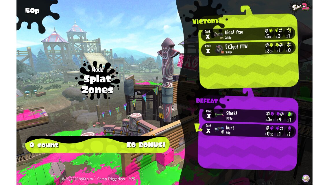 | Mode | Splat Zones - Private Battle | ||||||||||||||||