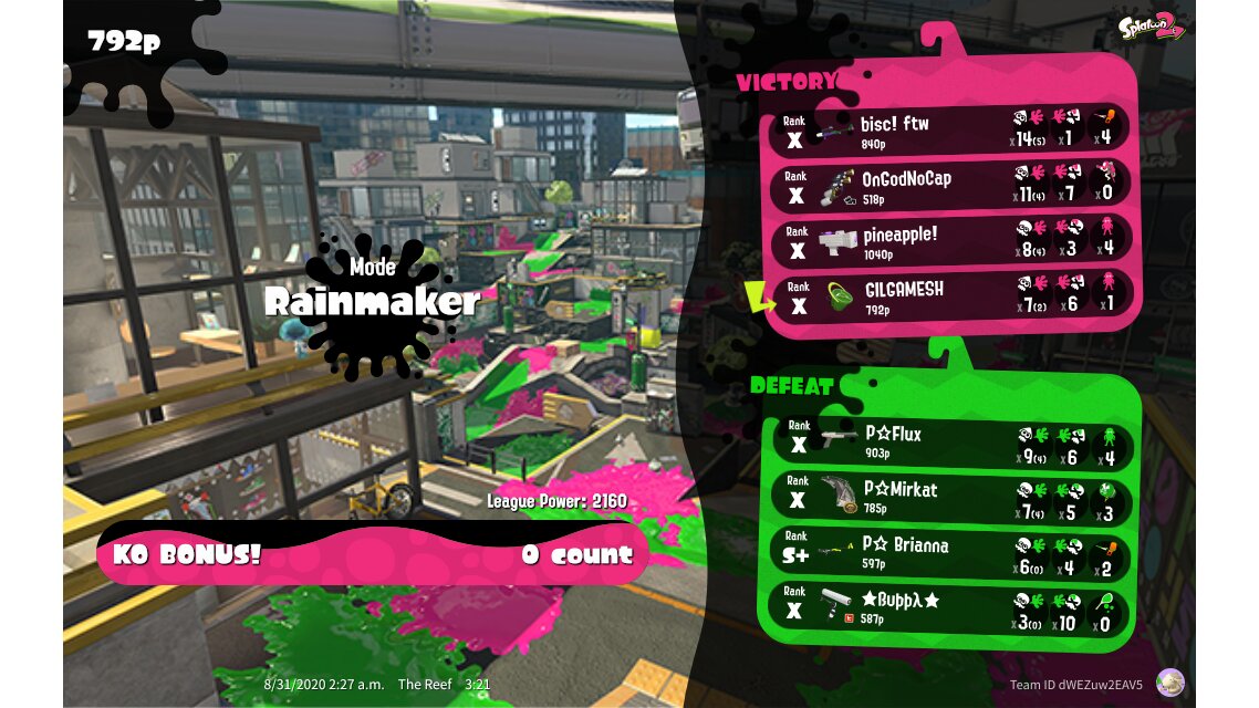 | Mode | Rainmaker - League Battle (Quad) | ||||||||||||||||