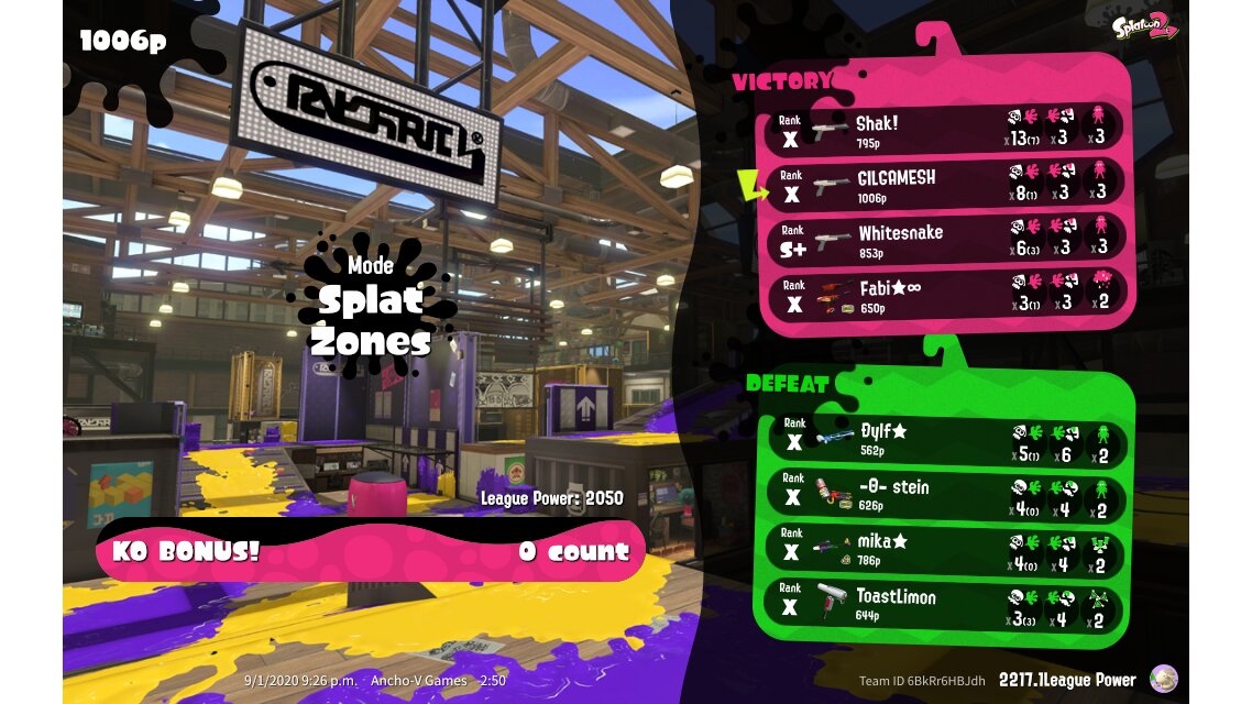 | Mode | Splat Zones - League Battle (Twin) | ||||||||||||||||||||||||||||||||||||||||