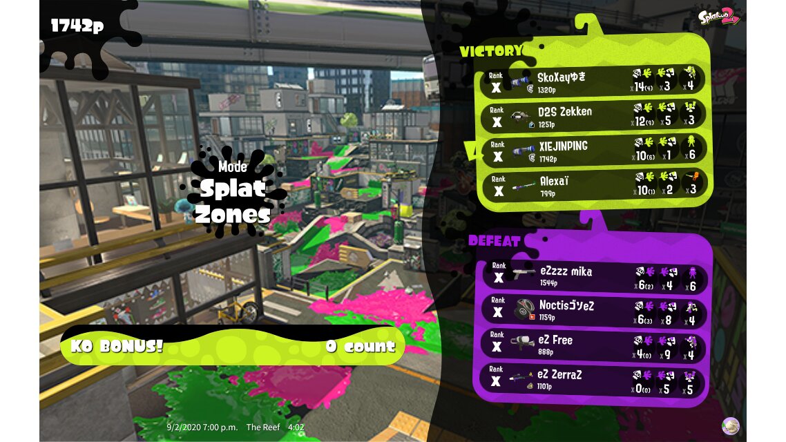 | Mode | Splat Zones - Private Battle | ||||||||||||||||