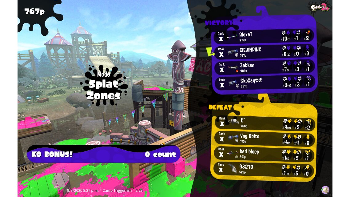 | Mode | Splat Zones - Private Battle | ||||||||||||||||