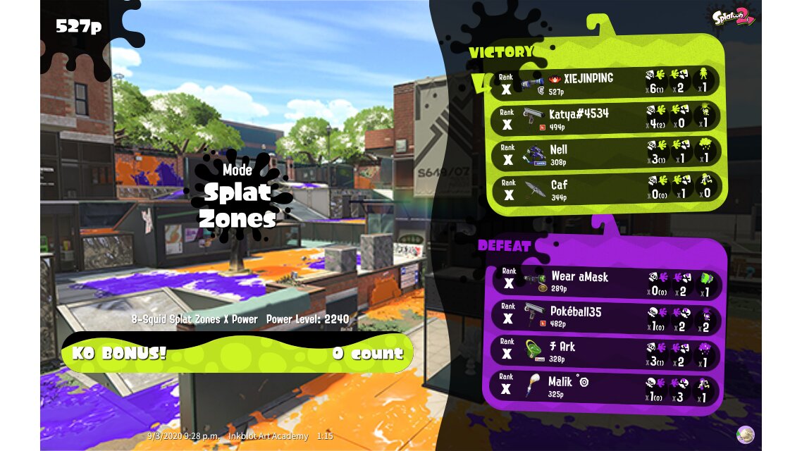 | Mode | Splat Zones - Ranked Battle | ||||||||||||||||