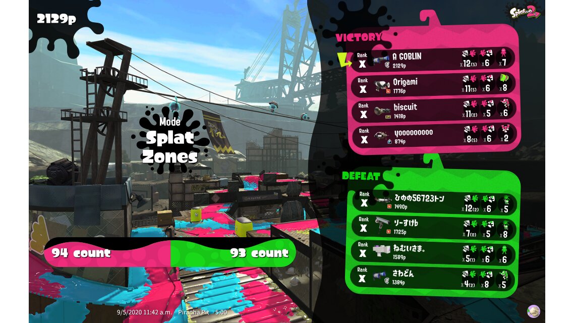 | Mode | Splat Zones - Private Battle | ||||||||||||||||