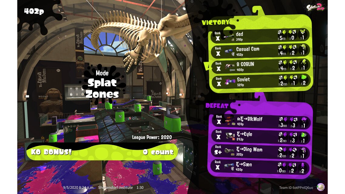| Mode | Splat Zones - League Battle (Quad) | ||||||||||||||||||||||||||||||||||||||||