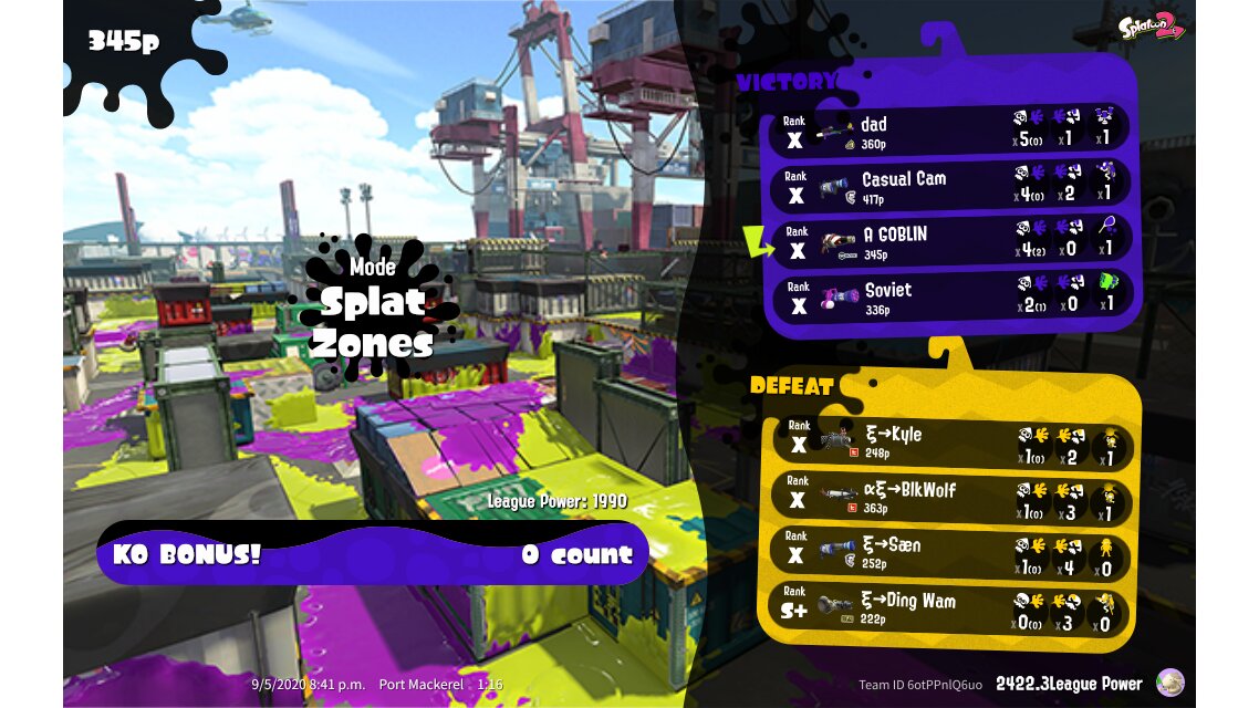 | Mode | Splat Zones - League Battle (Quad) | ||||||||||||||||||||||||||||||||||||||||