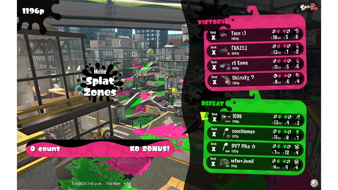 | Mode | Splat Zones - Private Battle | ||||||||||||||||||||||||||||||||||||||||