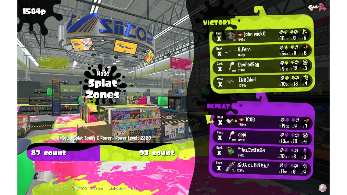 | Mode | Splat Zones - Ranked Battle | |||||||||||||||||||||||||||||||