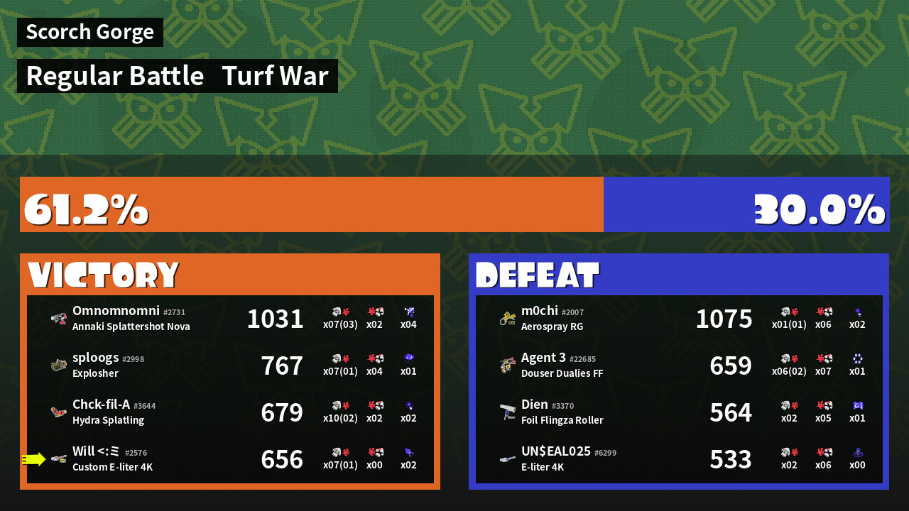 | Mode | Turf War - Regular Battle | ||