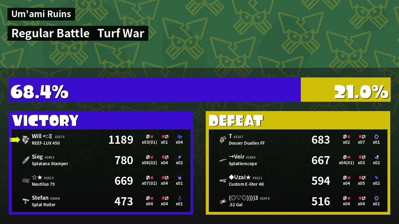 Kills / Deaths | 2 + 1 / 1 > Kill Ratio: 2.00 | ||