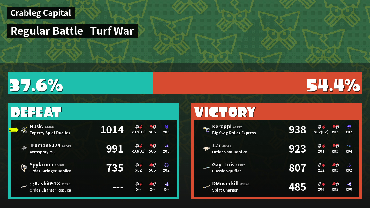 Kills / Deaths | 6 + 1 / 5 > Kill Ratio: 1.20 | ||