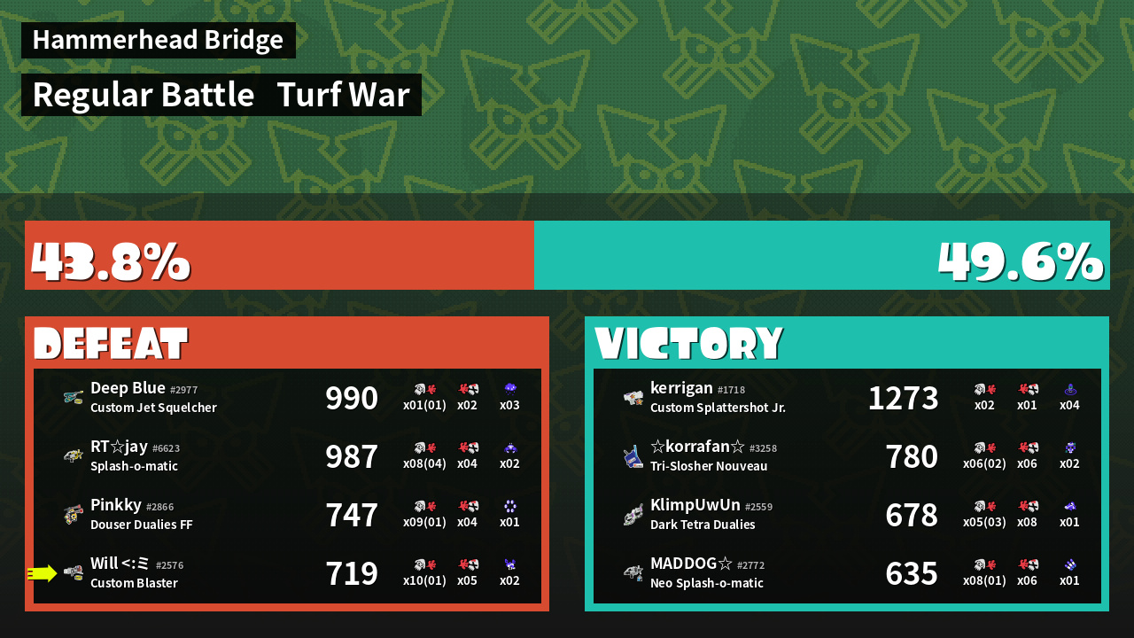 | Medals | #1 Overall Splatter #1 Enemy Splatter #1 Base Defender | ||
