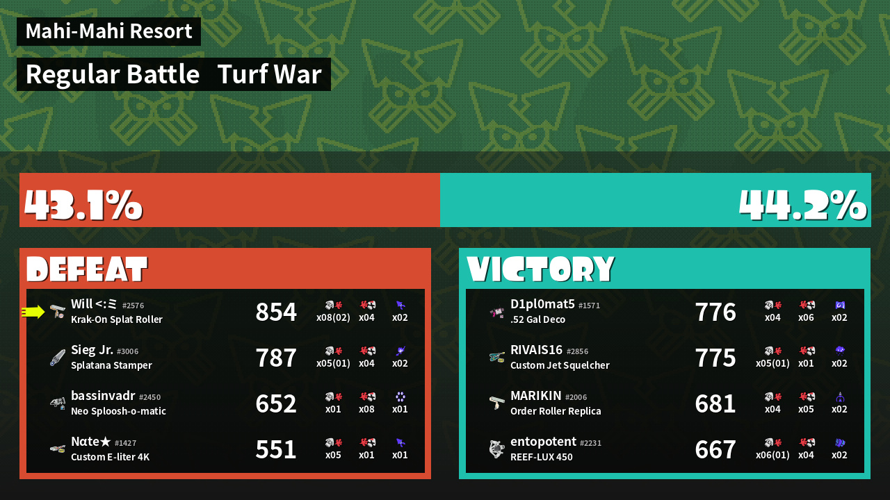 Kills / Deaths | 6 + 2 / 4 > Kill Ratio: 1.50 | ||