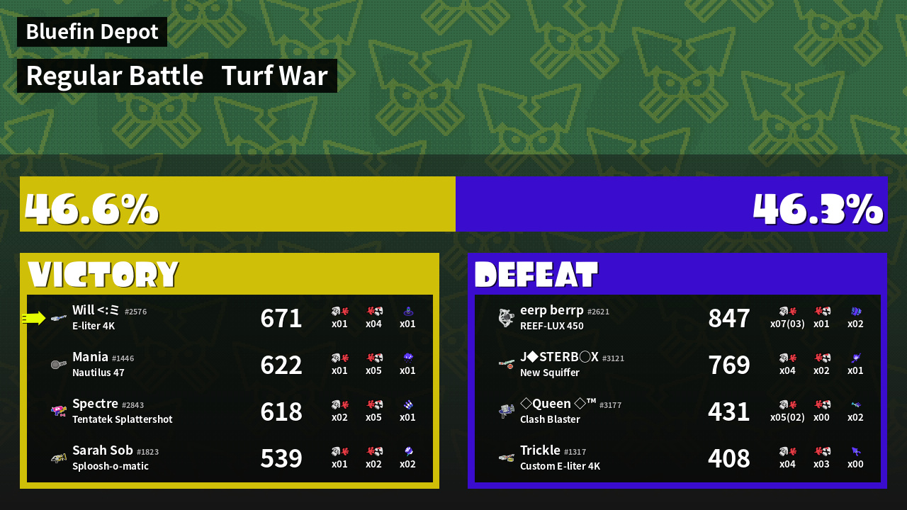 | Mode | Turf War - Regular Battle | ||