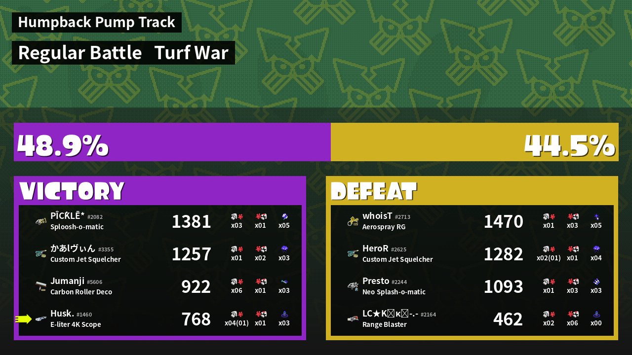 | Medals | #1 Splat Assister #1 Base Defender #1 Ink Consumer | ||
