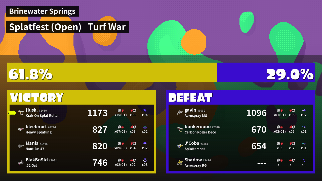 | Medals | #1 Overall Splatter #1 Turf Inker #1 Popular Target | ||