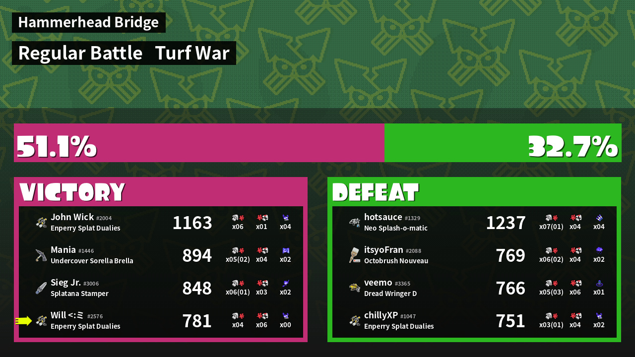 | Weapon | Enperry Splat Dualies ( Curling Bomb / Triple Splashdown) | ||