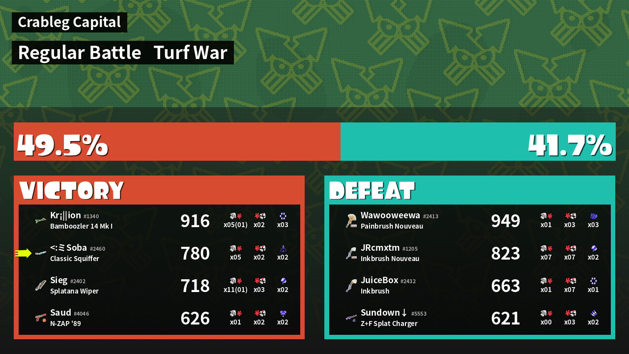 Kills / Deaths | 5 + 0 / 2 > Kill Ratio: 2.50 | ||