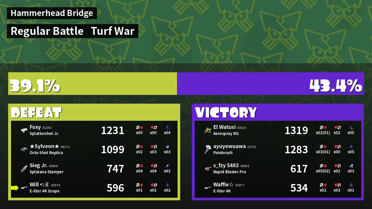 | Mode | Turf War - Regular Battle | ||