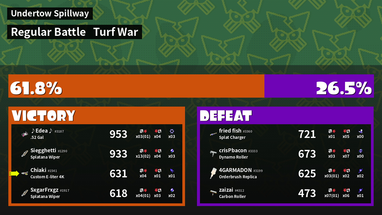 | Medals | #1 Super Jump Spot #1 Kraken Royale User #2 Overall Splatter | ||