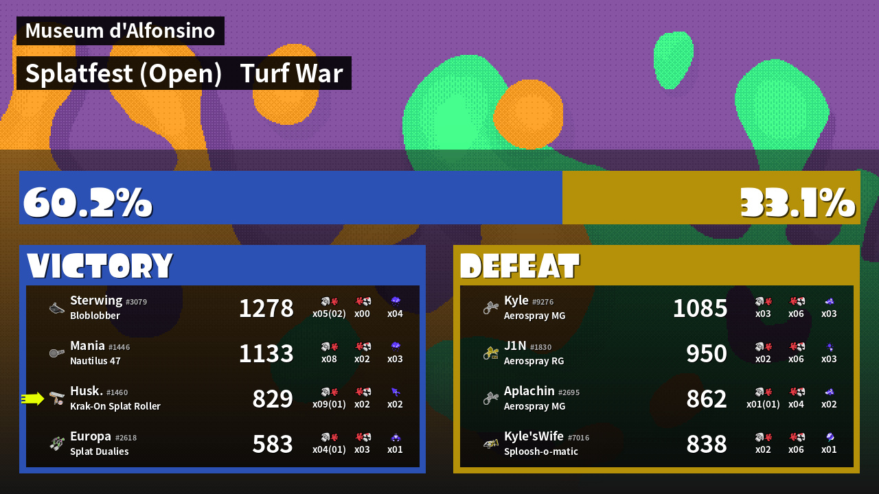 | Medals | #1 Overall Splatter #1 Popular Target #1 Home-Base Inker | ||
