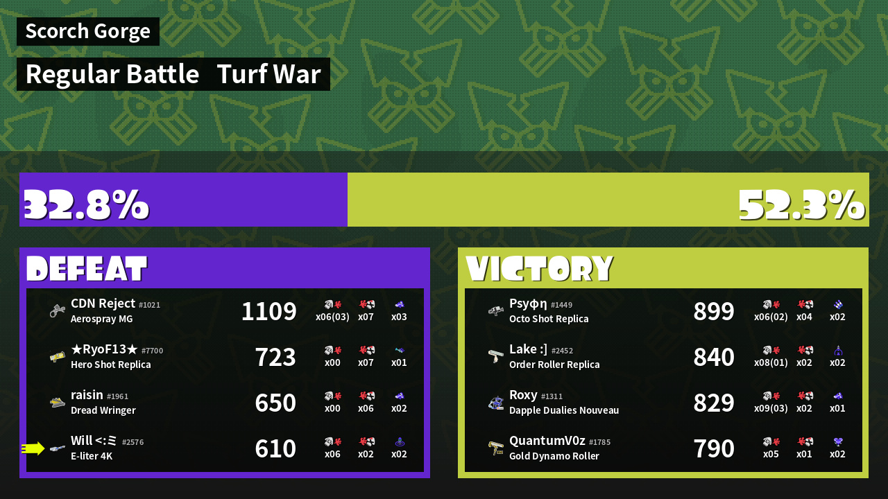 | Mode | Turf War - Regular Battle | ||