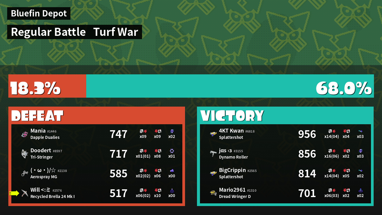 | Mode | Turf War - Regular Battle | ||