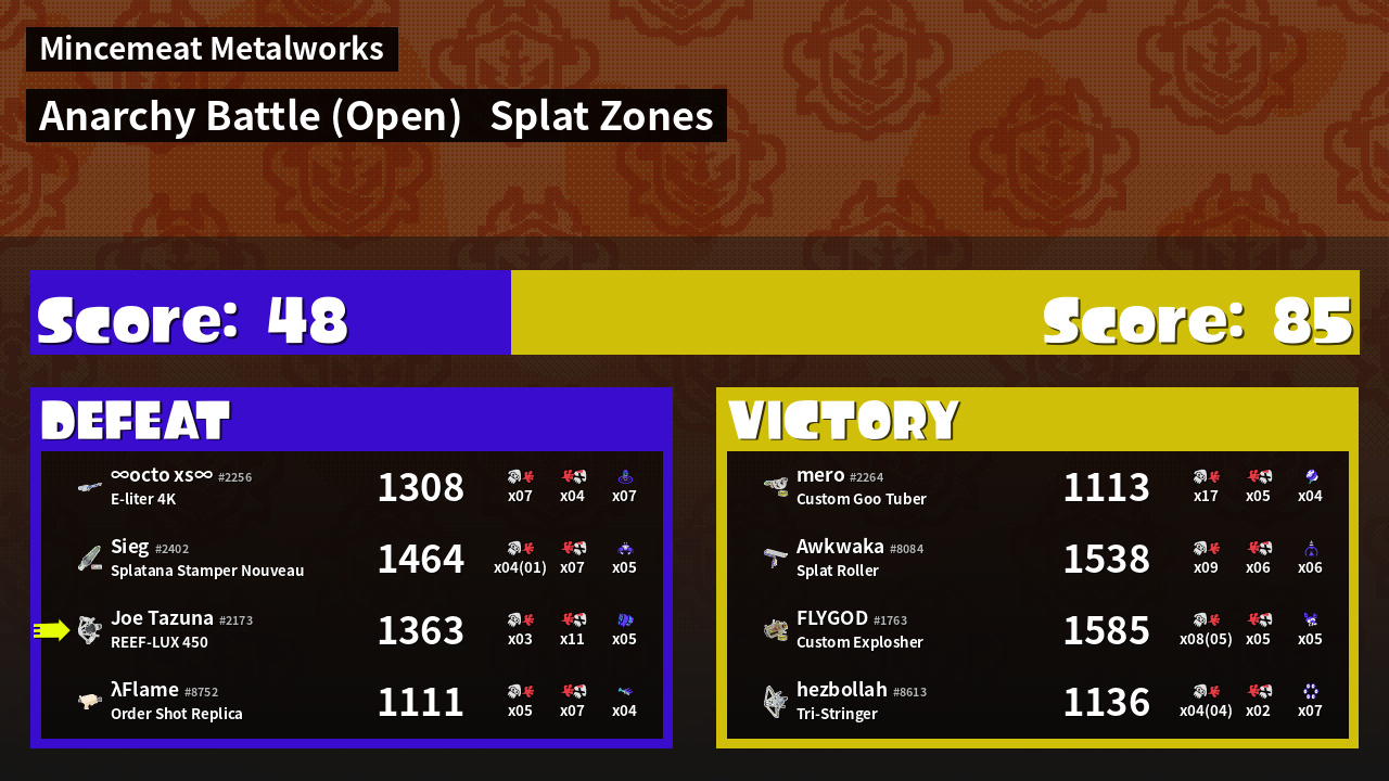 | Mode | Splat Zones - Anarchy Battle (Open) | ||