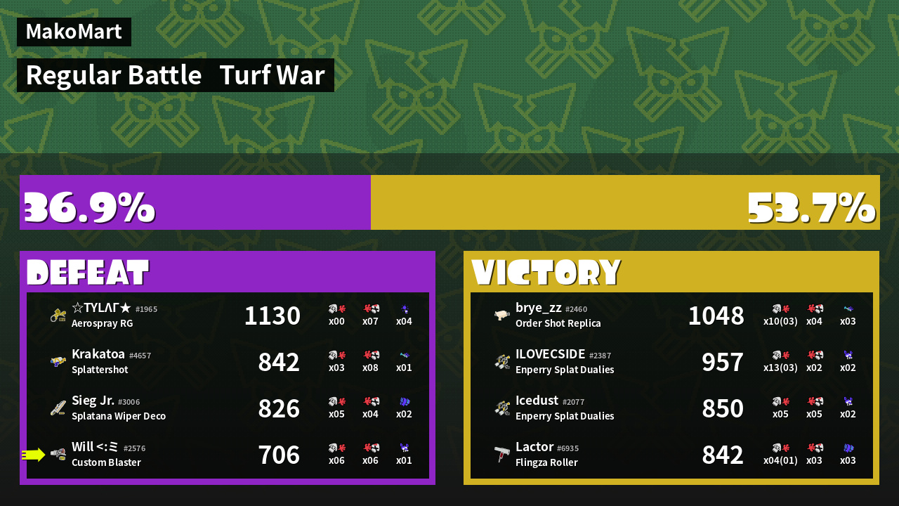 | Medals | #1 Overall Splatter #1 Enemy Splatter #1 Triple Splashdown User | ||