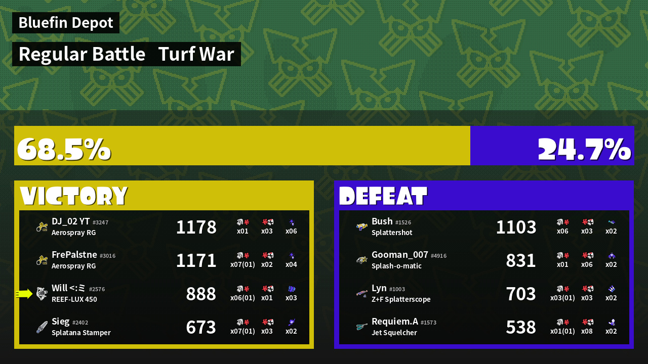 | Mode | Turf War - Regular Battle | ||