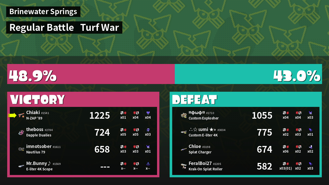 | Medals | #1 Turf Inker #1 Home-Base Inker #1 Enemy-Base Inker | ||