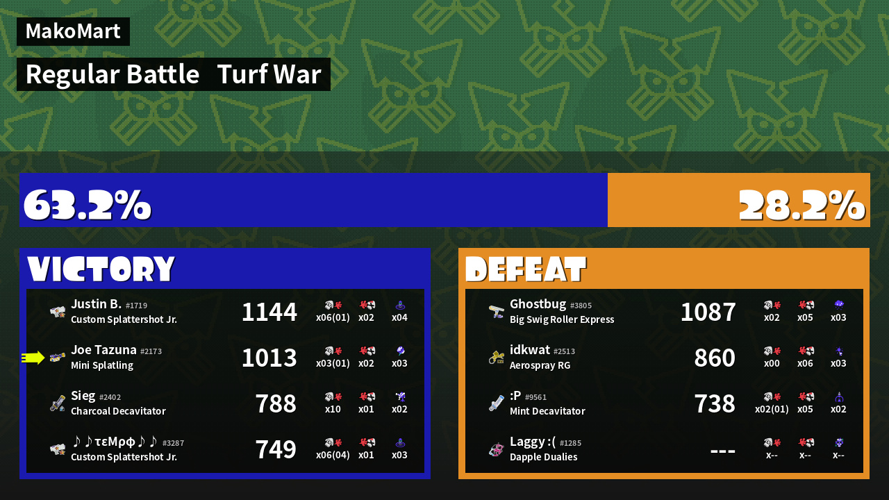 Kills / Deaths | 2 + 1 / 2 = Kill Ratio: 1.00 | ||